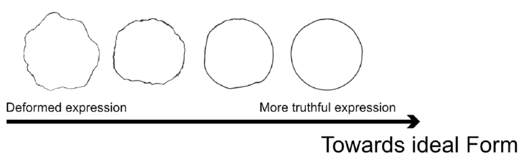 During the last seven centuries, the history of painting has been marked by a series of liberations – some intentional, others accidental. As the art world, through these upheavals, became what is now called ‘fine art’, the world of traditional medieval art became increasingly remote. If we want to understand what happened, we have to understand the medieval art that was left behind. We have to try to see the world the way medieval people did. It is easy to wander around in Art History, exploring the countless art movements that succeeded each other. For our purposes though, we will have a general look at three major periods: The medieval period, the Enlightenment period, and the Contemporary period. To get a grasp of what the art world is doing during these periods, we will take a look at two movements that mark a transition from one period to the other: The Renaissance, that departs from the Middle Ages into the Enlightenment; and Impressionism, that started the contemporary art movements. The Medieval PeriodBefore we continue, we will need to carefully define the term ‘form’. It is a term that has come to mean several things in the world of art. In the context of this article, we will use the word to refer to the essence of a thing; an abstract ideal that the thing participates in, albeit imperfectly. This will become clear with the example of a circle. A drawn circle will always be an imperfect expression of its mathematical form. The less perfect a drawn circle is, the more deformed it becomes.