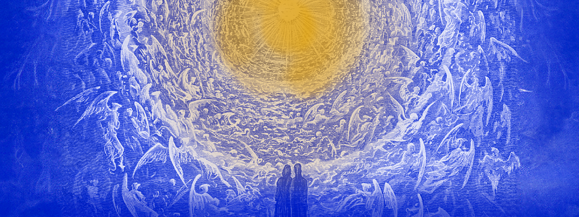 Having passed the examination of the three apostles, Dante concludes his ascent as he enters the Empyrean. Here, Beatrice leaves us to take her place with the Virgin Mary, and it is St. Bernard who now leads us and Dante in a grand vision of the Mystic Rose – the Church as Creation and Creation as the Church, the mystical marriage between Christ and his Bride. Through the intercessions of St. Bernard and the Virgin Mary, Dante is finally granted to move beyond symbols to a direct vision of God, gazing at last upon the love that “moves the sun and other stars.”